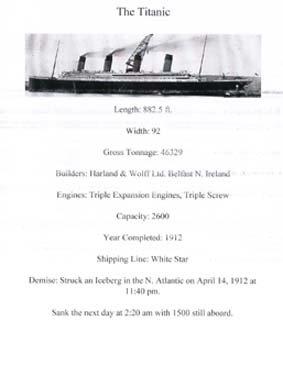 As you can tell by the title, this page is concerned with the 'Titanic', probably the most famous ocean liner of all. There are some basic statistics and other information, plus more pictures. There are also one or two links to other related sites further down the page.